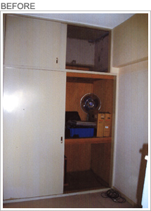押入れをクローゼットに改装し、内部造作は、洋服を収納する部分と可動棚を使って、