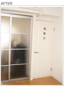内装ドアは、開き戸から片引き戸に取り替えました。